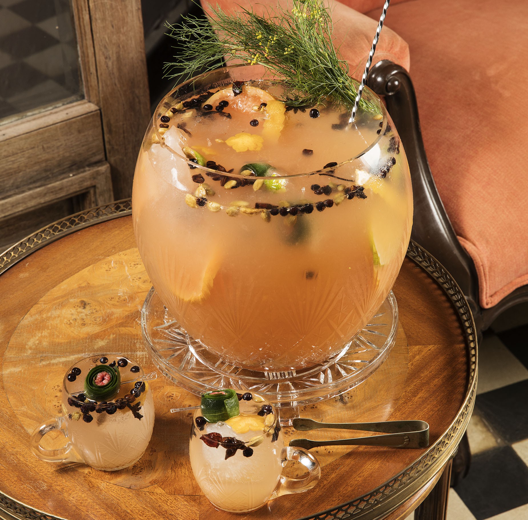 En este ponche buscamos resaltar la frescura combinando hierbas refrescantes con el sabor del pepino, más la fuerza y los botánicos cítricos del pomelo rosado. Todo esto con Gin, que combina a la perfección con la acidez del pomelo. Por último e...